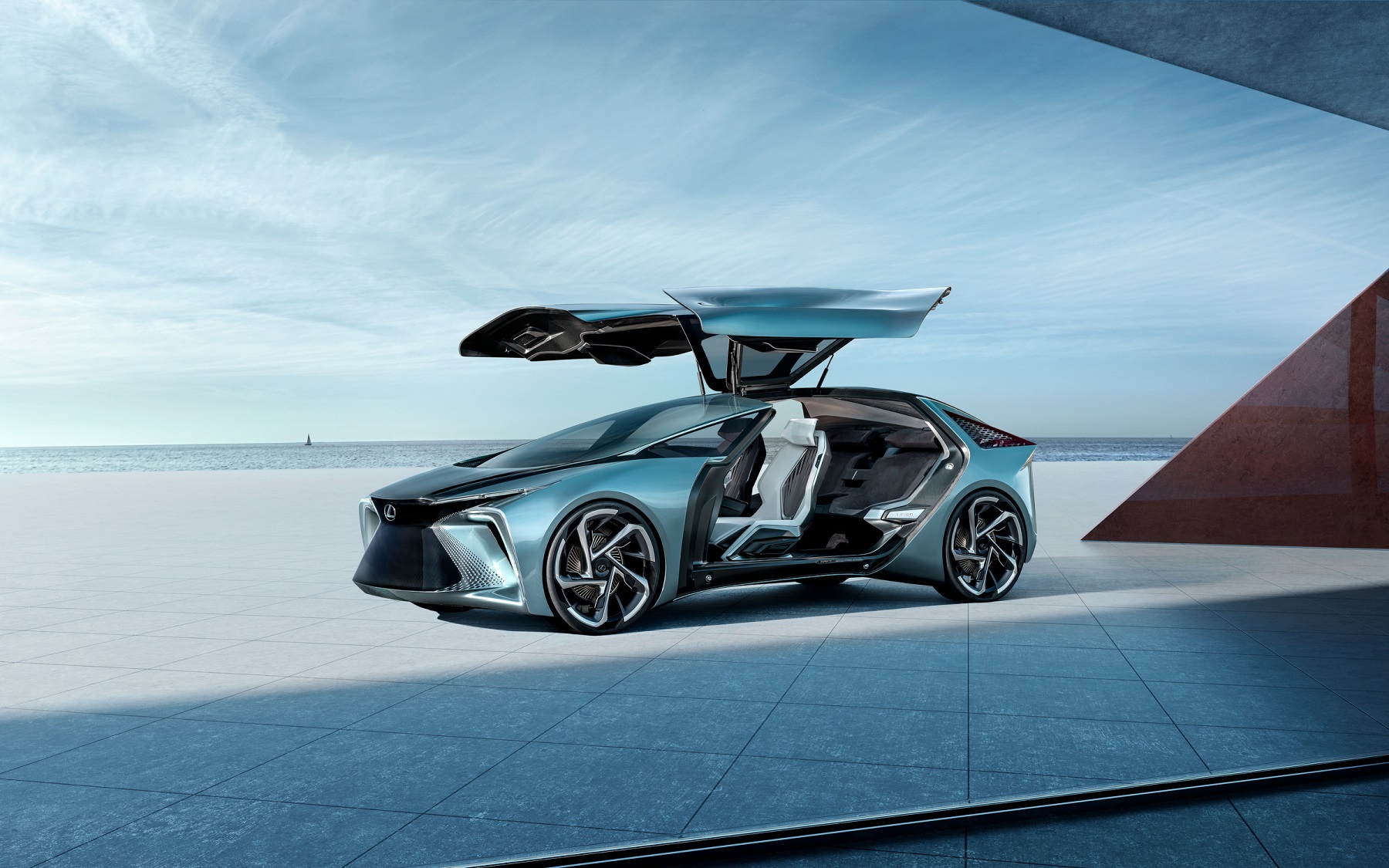 A opacidade dos vidros laterais pode ser ajustada livremente, podendo ser utilizada para amplas vistas da paisagem circundante e um alto nível de privacidade à noite ou noutras situações. A zona frontal do veículo e os padrões de luminescência, permitem identificar do exterior se o veículo está a ser conduzido no modo normal ou no modo de condução autónoma, refletindo a procura da Lexus em combinar estilo e funcionalidade de nível superior. A cor exterior ‘céu voltaico’ emprega um revestimento de ponta com infusão de alta qualidade de tinta com metal para atingir um toque único de azul esverdeado.
